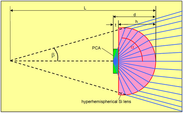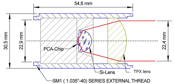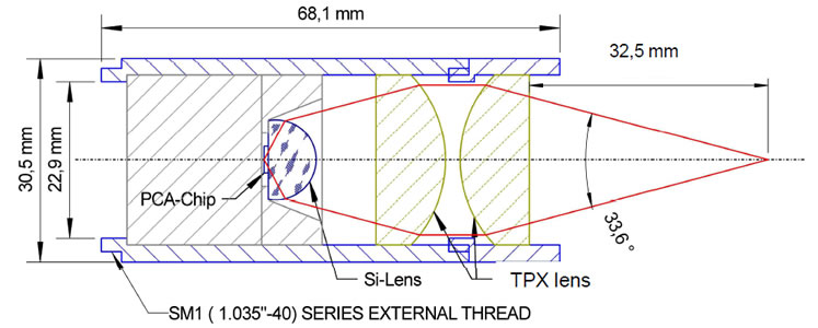 直径为1英寸的TPX透镜可以很容易地安装到PCA上,带有超半球硅透镜。