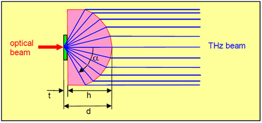 一个TPX透镜可以准直来自超半球基片透镜的发散太赫兹光束。