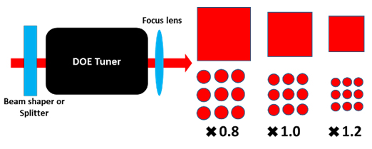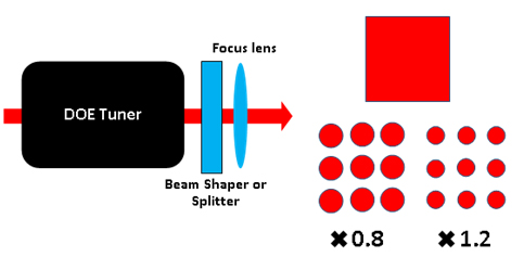 衍射光学调谐器的波长范围为266nm-1064nm,能改变光斑的大小,发散角等参数,多与平顶分布整形器、匀束器和多点分束器等衍射光学元件结合使用。