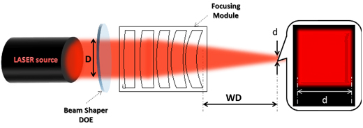 光束整形器可将(准)高斯分布的入射激光转变成任意波前形状的激光输出(圆形,方形,正方形和线性),光束光强分布均匀,具有陡峭的边缘。均匀分布的光斑在光处理过程中具有很大的优势,可以有效排除特殊区域的过量曝光或曝光不足。另外,陡峭的光束边缘使光处理区域和非处理区域的界限更加明显。