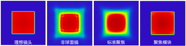 不同聚焦元件仿真结果对比(面积100x100?m2)