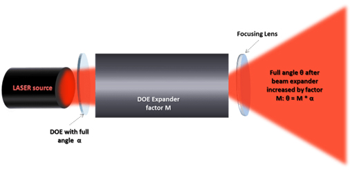 2. 将衍射扩束器与固定发散角的标准、半标准或在售的衍射元件结合使用,可快速改变其发散角,从而能够节约成本并快速交付。