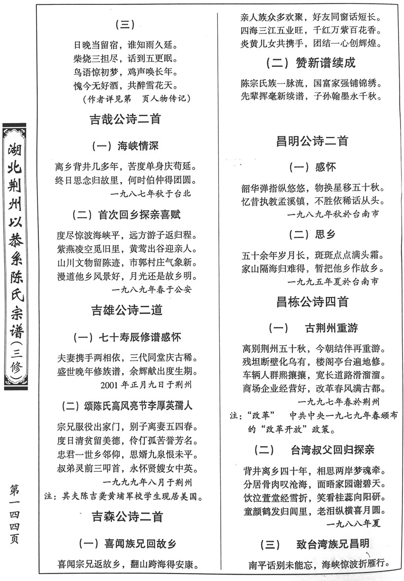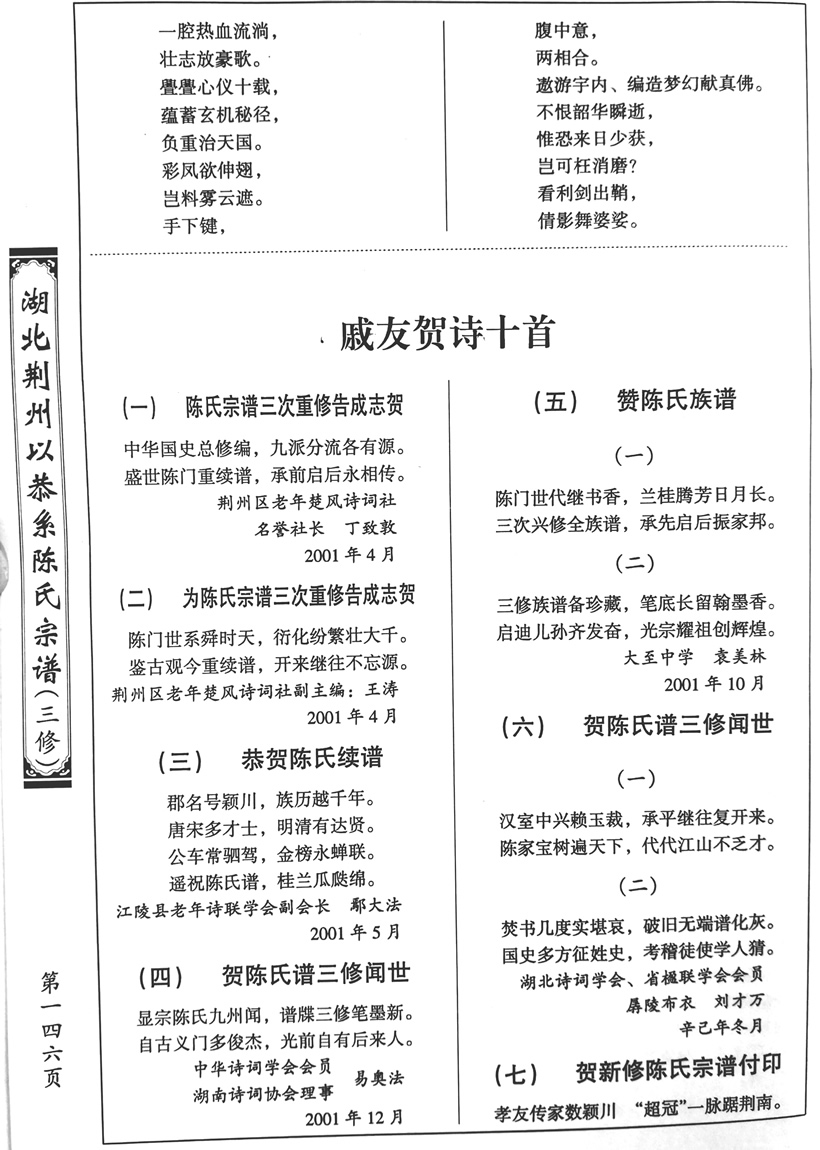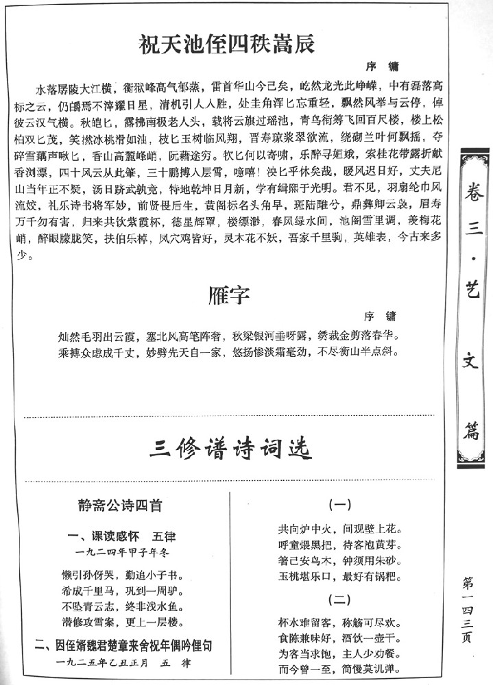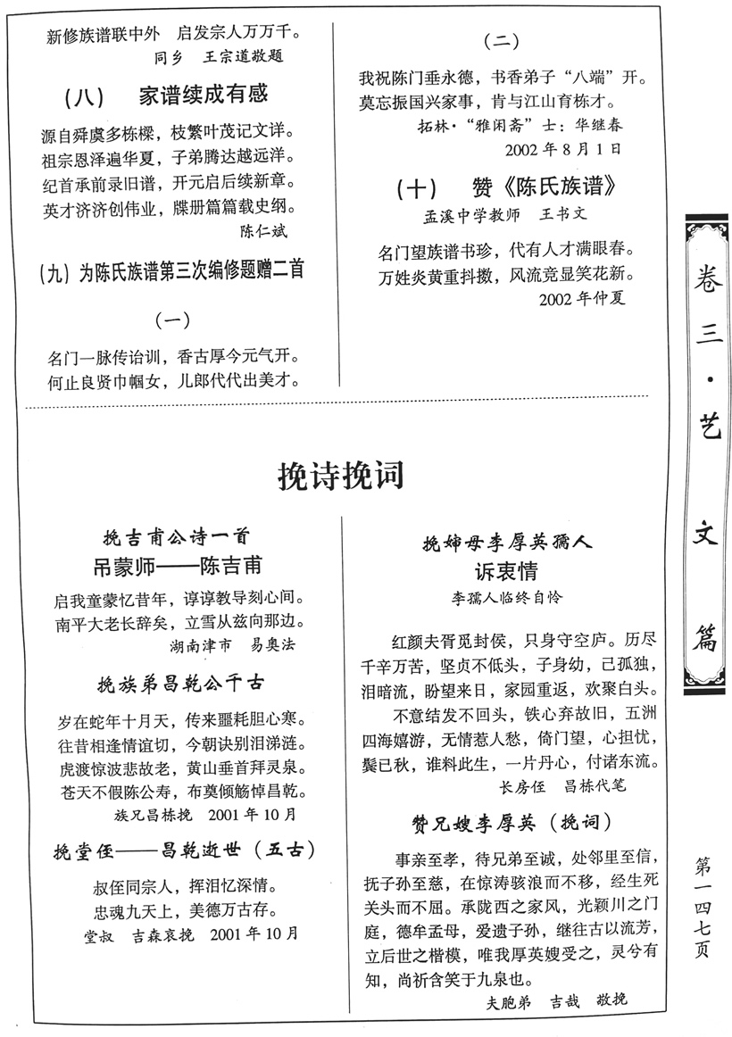 【三修谱】诗词选(143-147页) 作者:超级管理员 来源:本站 发布日期:2018-02-02 关注:619 上一篇:【三修谱】艺文、康熙皇帝圣诏、寿文、赞文(126-143页) 下一篇:【三修谱】楹联选(148-149页)
