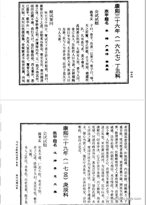 康熙三十六年七月十四日壬辰。策试天下贡士汪士鋐等于太和殿前。制曰: