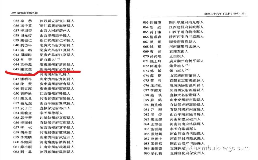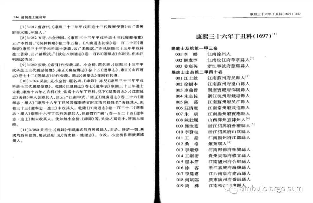 康熙三十六年丁丑科(1697)进士榜。一甲3名,二甲40名,三甲107名。思堂先生列三甲第45名(《清朝进士题名录》,中华书局,2007,第250页)。