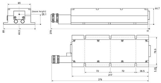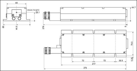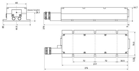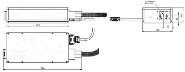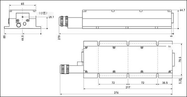 激光头尺寸209.25 x 54 x 50 mm