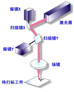 振镜扫描式打标头主要由XY扫描镜、场镜、振镜及计算机控制的打标软件等构成。根据激光波长的不同选用相应的光学元器件。