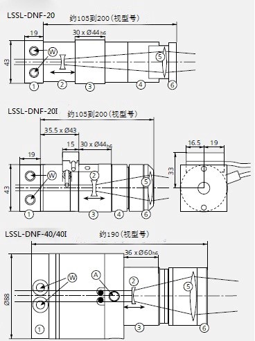 焦点光斑大小 630μm(150μm光纤) 600μm(200μm光纤) 600μm(100μm光纤)