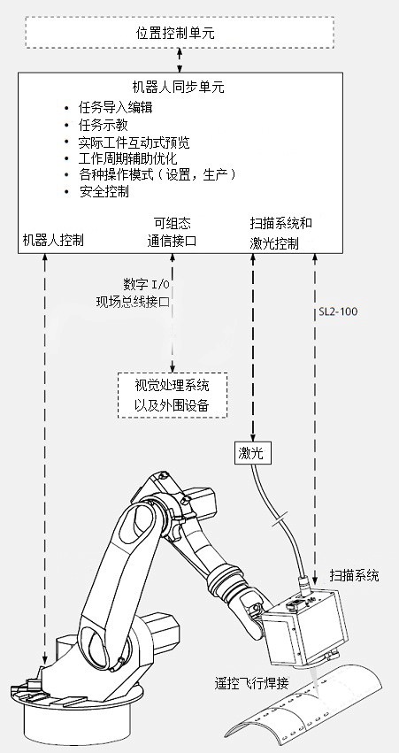 机器人同步是一个为激光焊接系统(激光、焊接头和机器人)设计的中央控制单元。简单直接高效,易于焊接编程(看右图)。