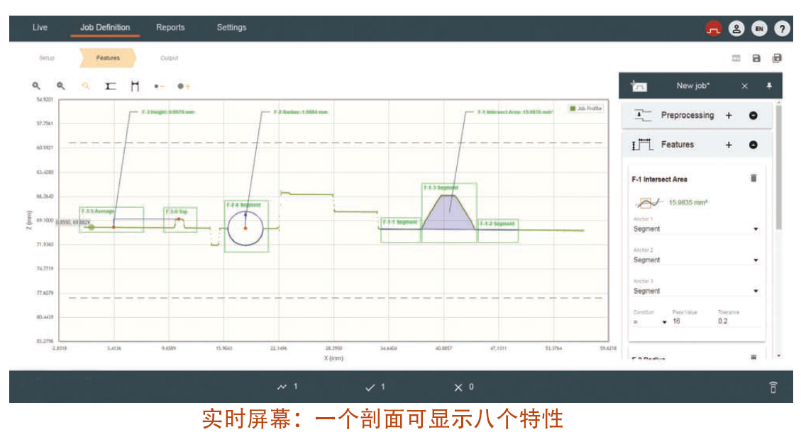 为了获得更好的剖面分析数据,Truemap 数据同样可用于TrueSurf。OPM为了完成测量过程为客户提供多种分析能力和最先进的数据显示的软件。