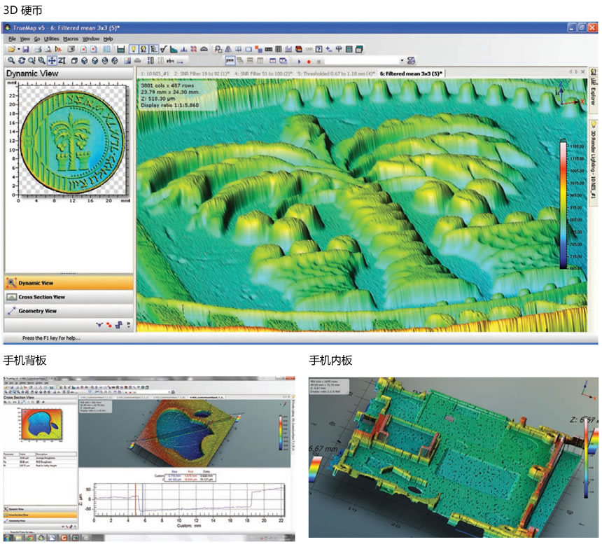 “Truemap”是用于观察我们传感器的测量结果,对获得的数据进行深入的分析。“Truemap”提供了多种分析工具包括滤波器、拟合、拆模,和许多其他可视化选项,如动态尺和剖面部分的实时三维图形环境。